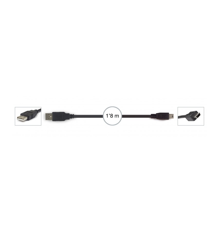 Cable diseñado para conectar USB A a mini USB B de forma segura y eficaz gracias a su construcción. Tiene una longitud muy práctica de 1,8 m.