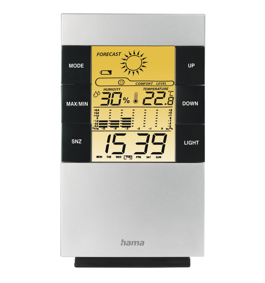 Para indicar digitalmente la temperatura, humedad atmosférica, hora, día de la semana, fecha, perfil de temperatura y pronóstico del tiempo