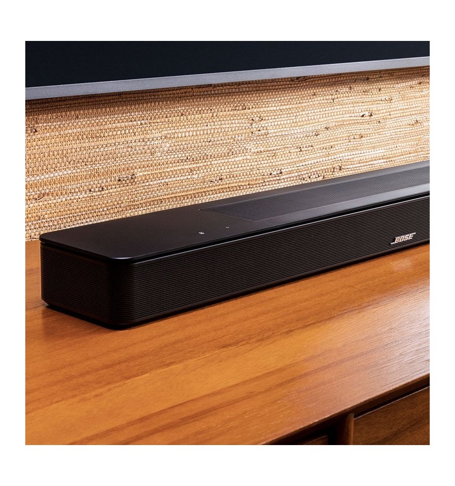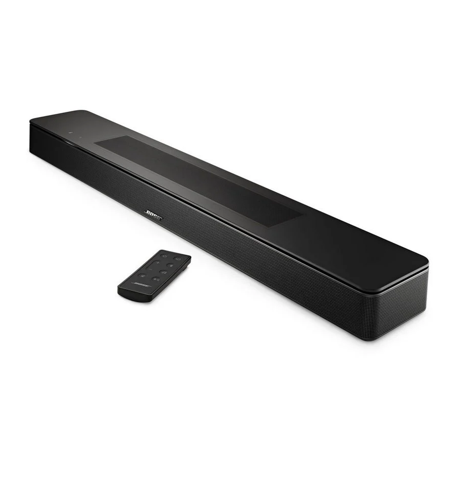 Mando a distancia: botones de encendido, volumen, silencio y origen (TV, Bluetooth, aplicación Bose Music), reproducción/pausa