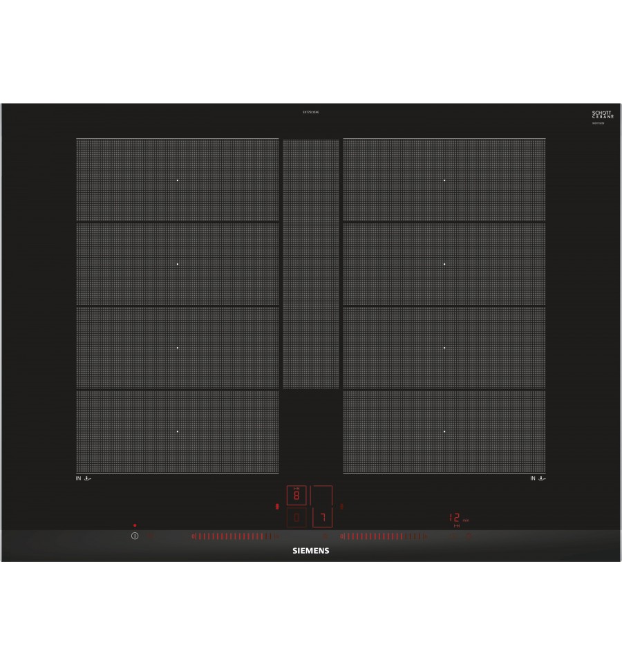 Siemens EX775LYE4E. Diseño: Integrado, Tipo de quemador: Con placa de inducción, Color del producto: Negro. Tipo de control: Tocar, Longitud del cable: 1,1 m. Carga conectada (eléctrica): 7400 W, Voltaje de entrada AC: 220-240, Frecuencia de entrada AC: 50/60. Ancho: 710 mm, Profundidad: 520 mm, Altura: 51 mm
