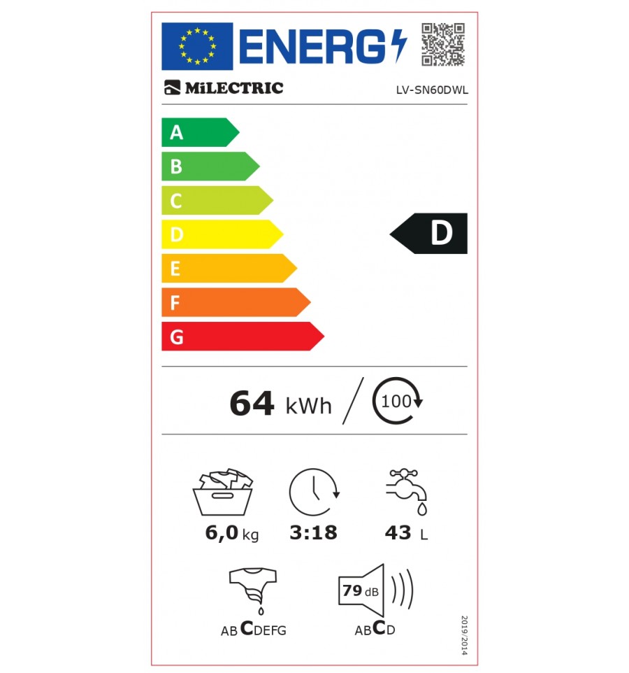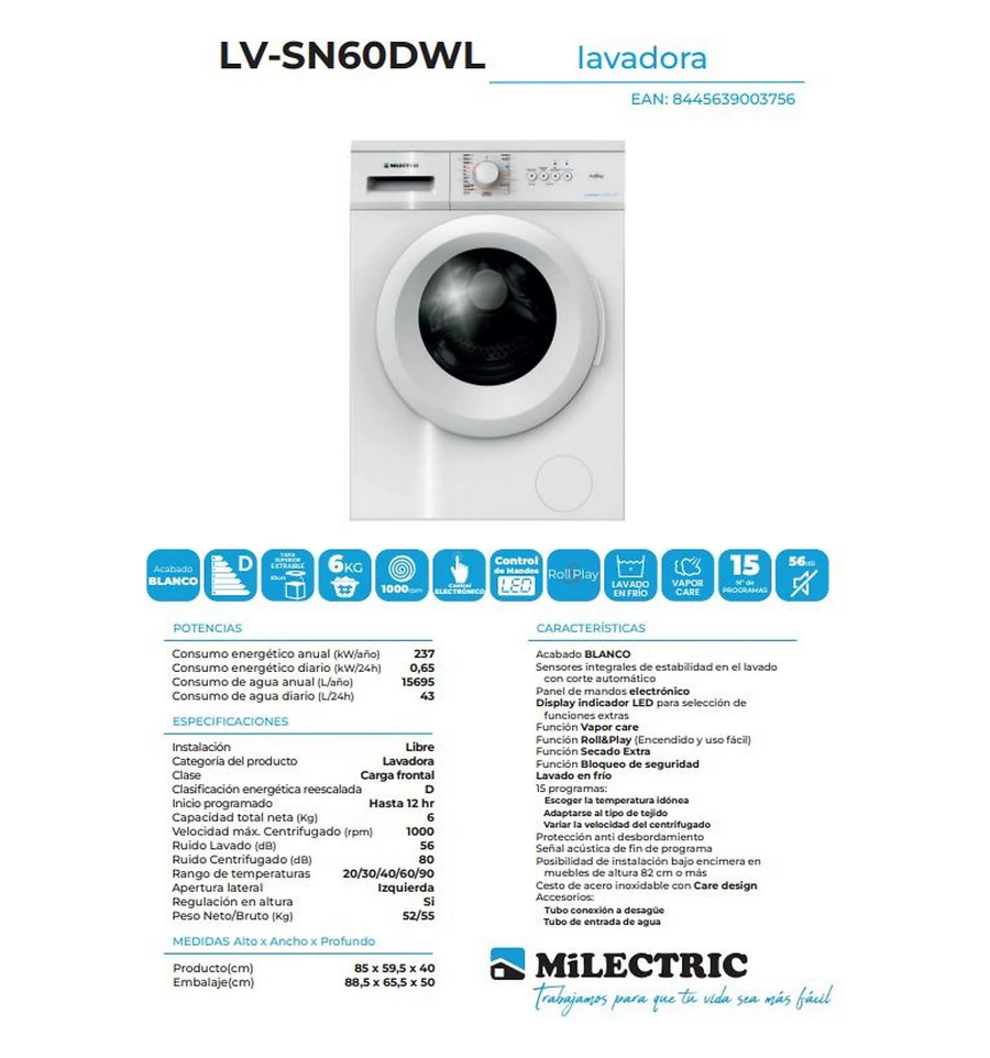 | Consumo anual de energía, lavado | 237 kWh/año |