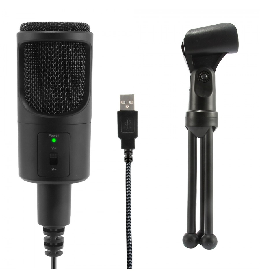Micrófono de condensador ideal para grabar, conversar o cantar por internet, para jugar online o para video conferencias a través de Youtube, Skype, Twitch, etc.