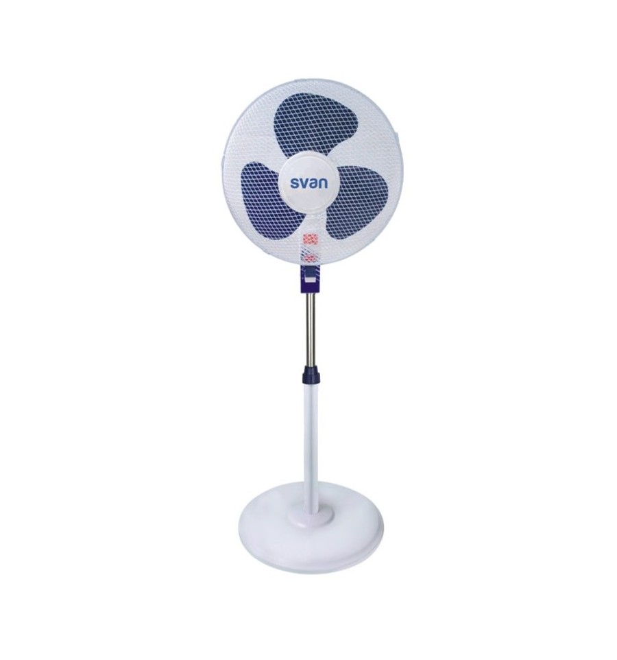 Estética blanca y azul con base redonda. Sistema de control manual con 3 velocidades.