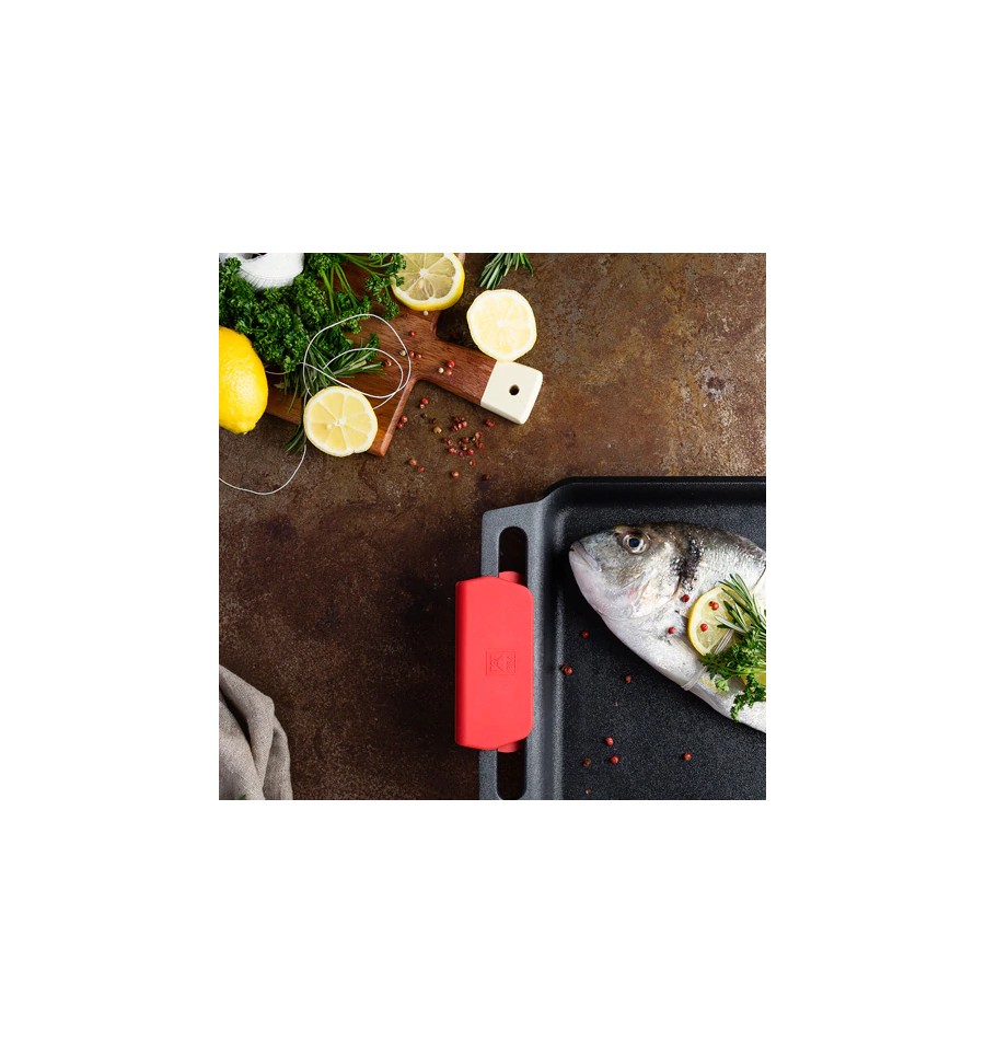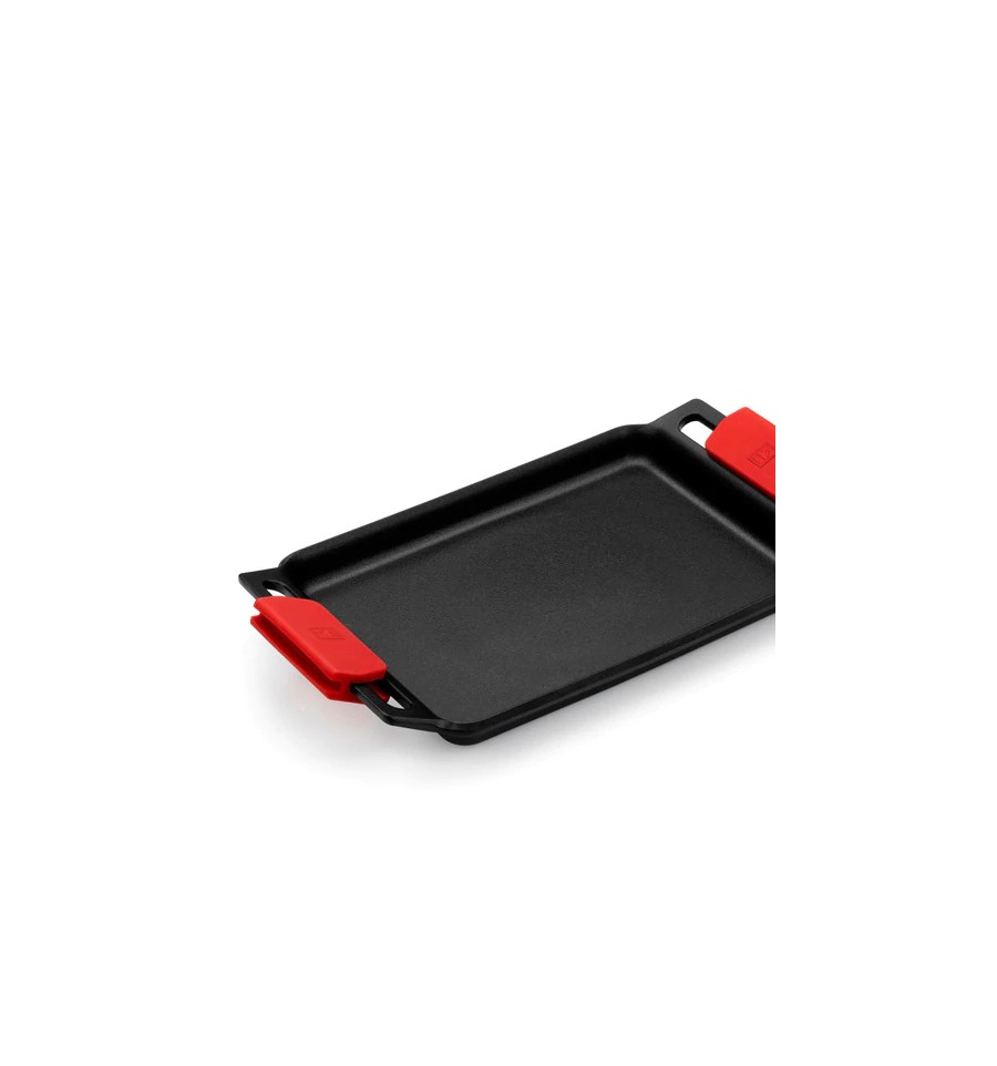 Incluye dos asas de silicona en color rojo para coger la parrilla con comodidad y sin riesgo a quemaduras.