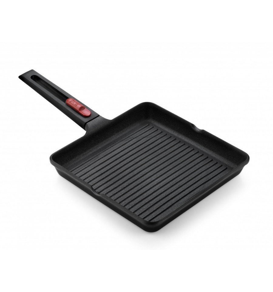 Su cuerpo de aluminio fundido con revestimiento antiadherente PREMIUM se separa del mango desmontable, con gran facilidad, para un mantenimiento, limpieza y almacenamiento óptimo.