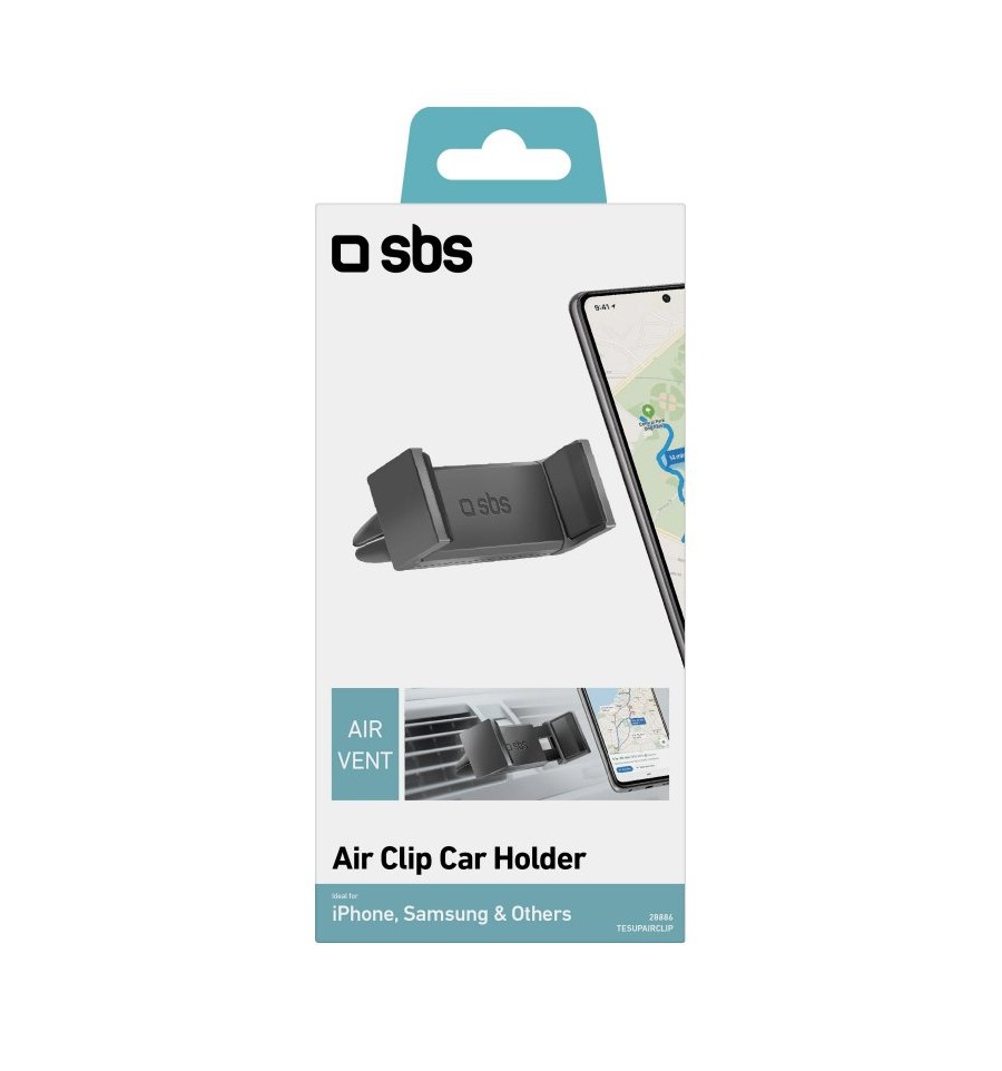 Ponlo en la entrada del aire a través del práctico clip que hay en la parte trasera del soporte: se mantendrá siempre estable.