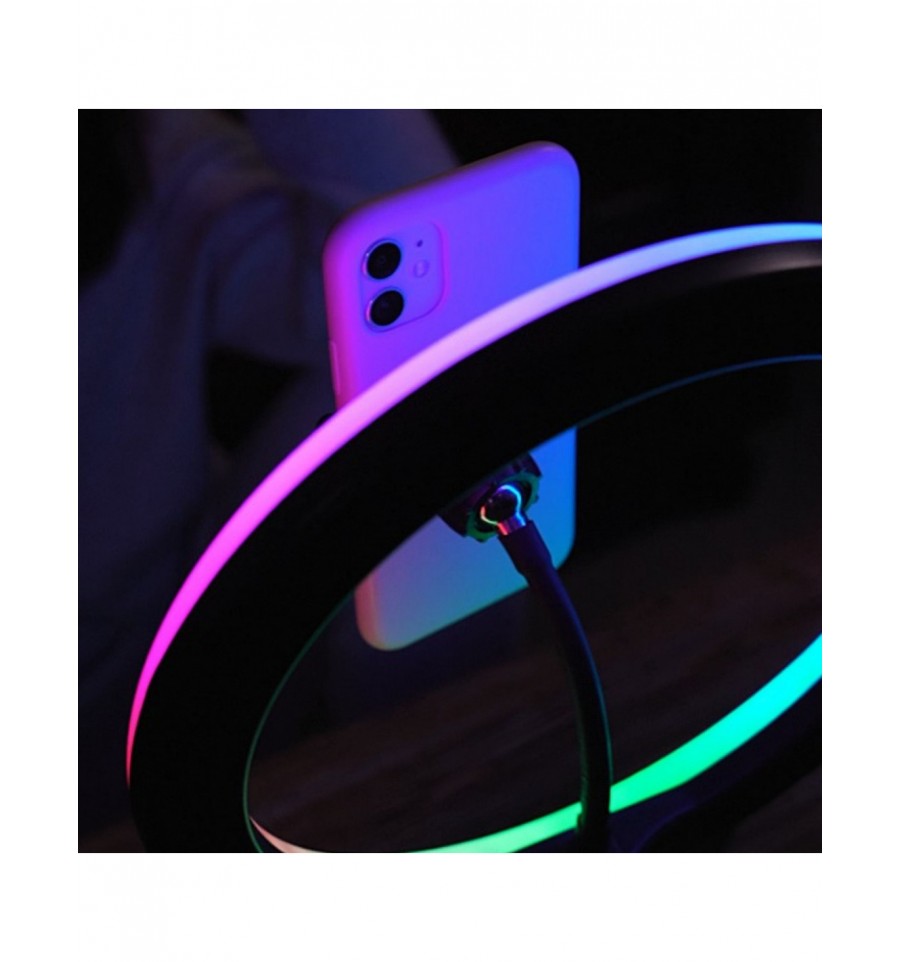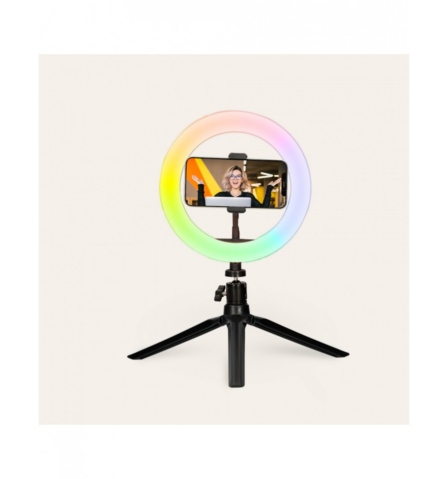 El aro de luz Studio Live Colors incluye todo lo necesario para montar un estudio de vídeo y grabar los mejores vídeos con un Smartphone.