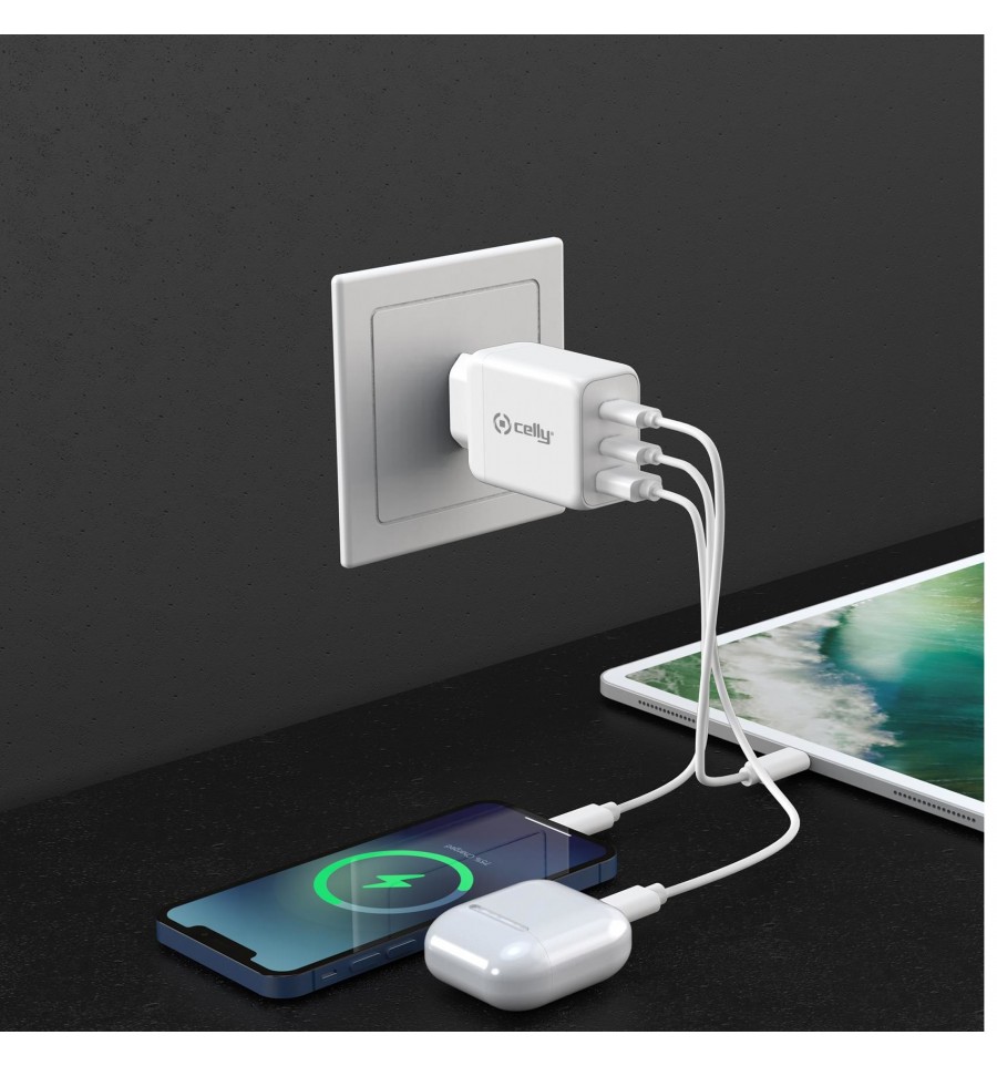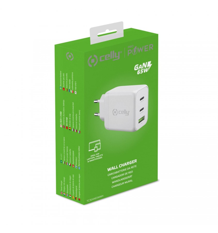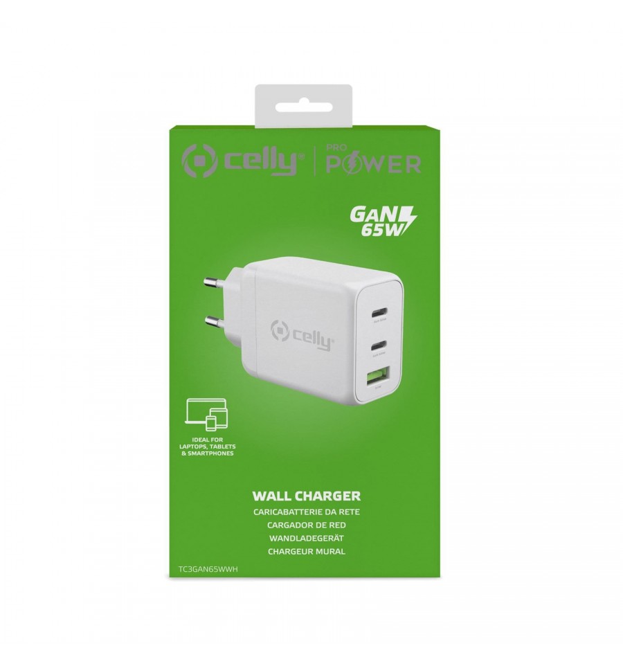 Cargador Celly TC3GAN65WWH 65W 3en1
